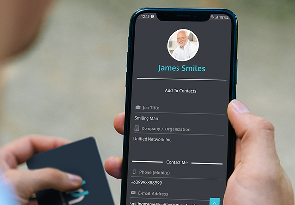 A combination of NFC chip and QR code ensures that your card is compatible with all smart phone models.